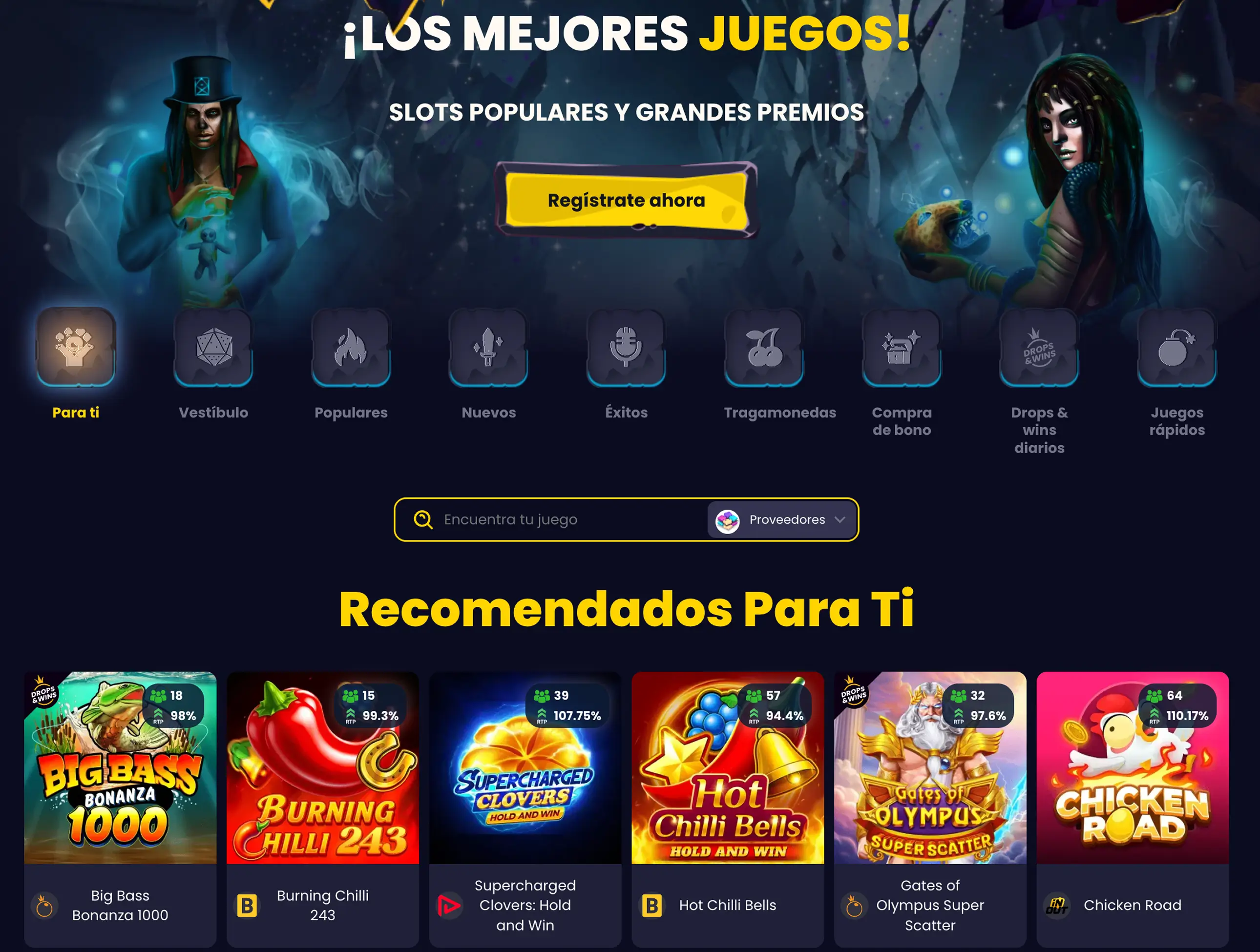 | Proveedores de juegos | Más de 100 (Evolution, Pragmatic Play, NetEnt, Play'n GO, y más) |